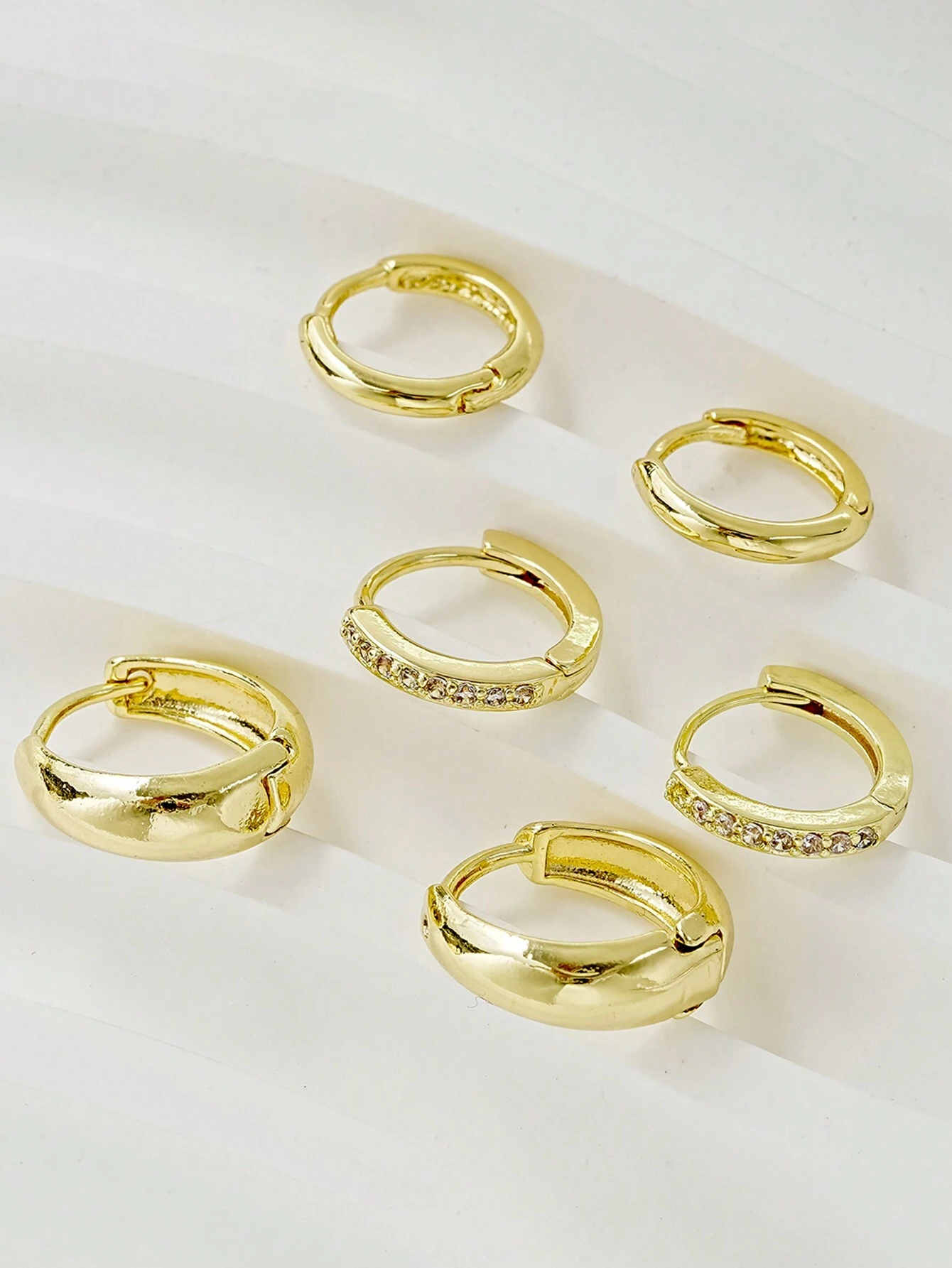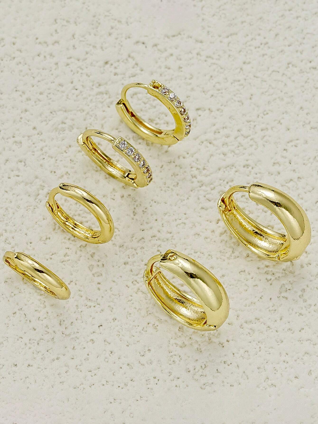6pcs Simple Copper & Zirconia Earrings Set, Ideal For Ladies’ Vacation, Date Or Daily Wear, Gift Choice